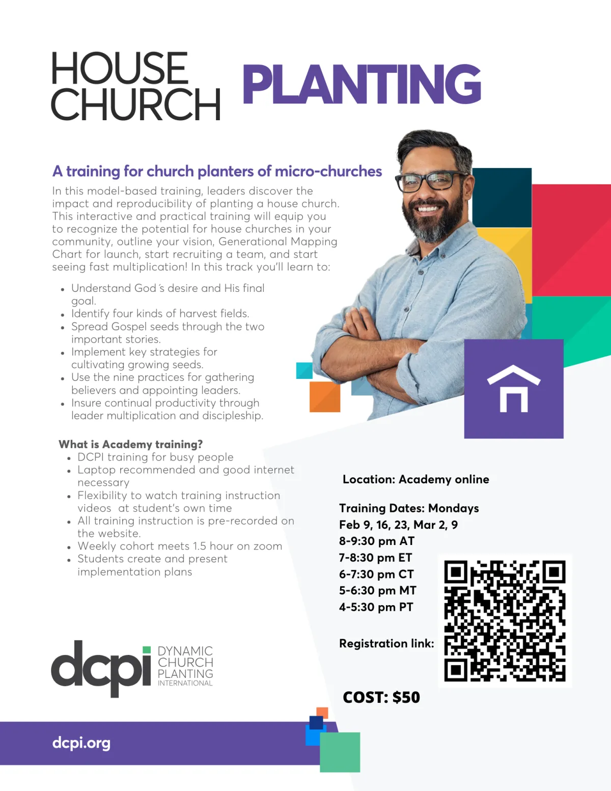 The multi-track training will offer registrants to choose 1 of 5 tracks (Church Planting Essentials, Churches Planting Churches, Healthy Church Dynamics and Mentoring Church Planters, (NexGen Challenge Tues/House Church Planting WTH) Our annual vision summit will follow the training event where we meet to worship, pray, increase vision and plan to multiply in North America. with others will present DCPI vision and goals as we network and work together for the coming year.